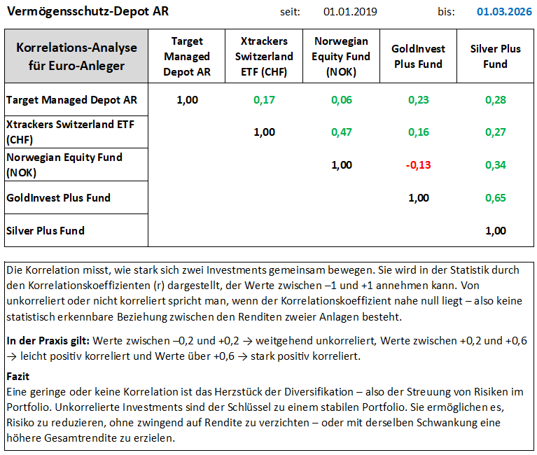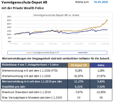 Vermögensschutz-Depot AR – steht für die defensivere Variante und Vermögensschutz-Depot FT für ein höheres Rendite-Potenzial.